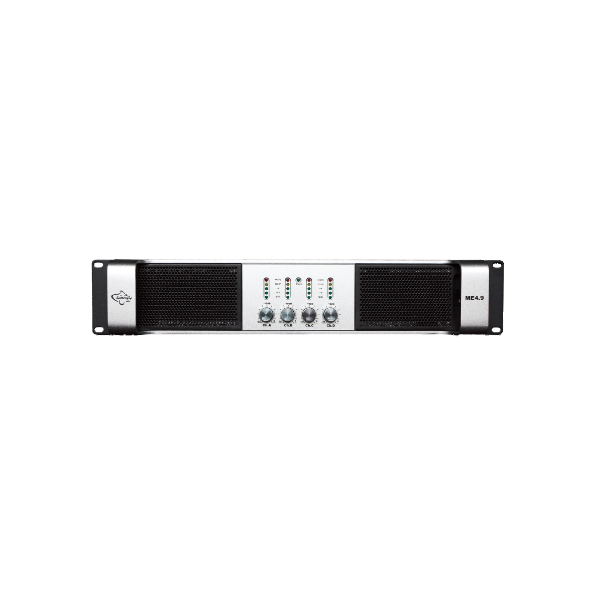 ME系列是一款性能极高的功率放大器,音色优美,专为TD®专利输出,效率高,透明度高,具有一套完整保护功能。 机架尺寸为 2U 的 ME系列延续了TD类技术,同时保持了AB 类输出级极佳的音质,从而为扩声音响功率放大,长时间运行创建了可靠保障。 ME系列在不同的输出功率上都有 2声道 和 4声道 的版本。旗舰产品 ME2.4能 够产生14000 W的输出功率(2U机箱,仅重13公斤),轻松应对次低音音箱的需要。ME系列的其他型号还能满足 从线阵列单元,到全频返听以及补声音箱的不同功率和声道数的要求。该系列放大器的 4 通道型号中,可将每一对通道桥接,以形成 2-、3- 或 4- 通道工作方式。在全功率工作时不会出现削波失真,同时所有型号中的全部输入灵敏度在 23至 44dB之间可以按 3dB 的增量调整。另外,可以对输出功率进行单独限制,以适应每个通道负载的功率需求,从而保护扬声器不被损坏。VPL (电压峰值限制) 提供了 8 段峰值功率输出级,可有效地对中频和高频喇叭进行保护。 当然,极高的功率强度要求具有高效的散热部件,Butterfly audio的冷却系统在ME系列中显示出了非常显著的效果。由数千个小的铜散热鳍散发热量,且所有输出级晶体管均与气流垂直固定于一排,以便取得同等的散热效果。ME系列放大器能够进行 “ALL THE POWER ALL THE TIME (全时间全功率) ” 输出,同时性能不会降低,特别是能够广泛适应多种负载和功率需求。 每个通道均有单独的可调节电压峰值限幅器 (VPL),该限幅器对于任何尺寸和负载的扬声器均可以使输出达到最优化,从最大的超低频音箱到一组16欧姆的中频或高频驱动器都可以。使用 VPL,再加上可调整的输入增益,从而获得了最大的余量,不用考虑输入电平或输出阻抗的大小。 为了确保可靠性,ME系列放大器提供了全面的告警和保护功能,只要出现接线错误、使用不当、或环境温度过高的情况,ME系列放大器都会提供清楚准确的问题指示。同时每隔 6 秒钟对工作条件进行重新检查,当测量的结果回复正常时,设备才恢复正常工作。